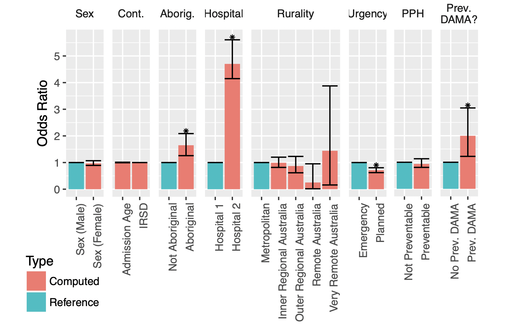 Results: There were 246,359 admissions for 124,757 patients, of which 1871 (0.8%) admissions and 1730 patients (1.4%) DAMA. Predictors of DAMA in a given admission were hospital site (OR 4.8, CI 4.2–5.7, p < 0.01), a mental health/behavioural diagnosis (OR 3.3, CI 2.2–4.8, p < 0.01), Aboriginality (OR 1.6, CI 1.3–2.1, p < 0.01), emergency rather than elective admissions (OR 0.7ha, CI 0.6–0.8, p < 0.01), a gastrointestinal diagnosis (OR 1.5, CI 1.1–2.0, p = 0.04) and a history of previous DAMA (OR 2.0, CI 1.2–3.2, p = 0.05).